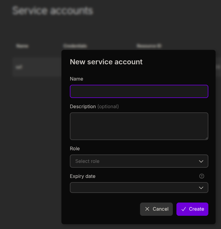 Create a new Service Account:
