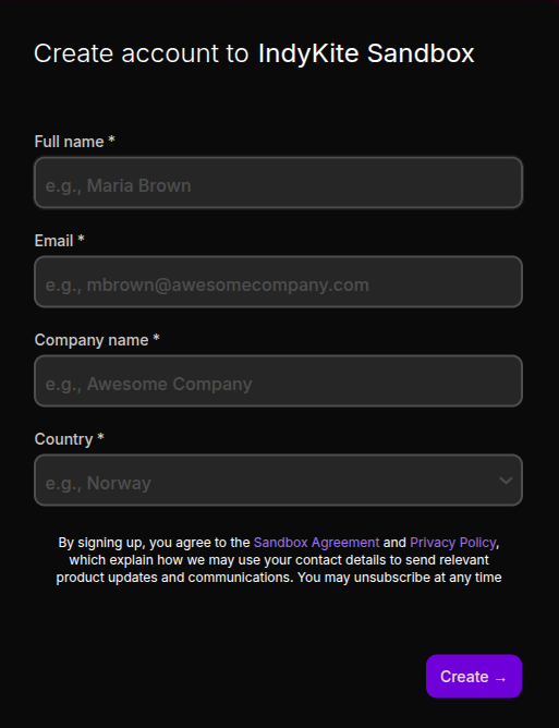 Create an account: IndyKite Sandbox Registration
